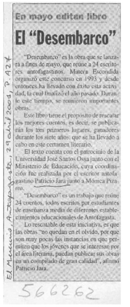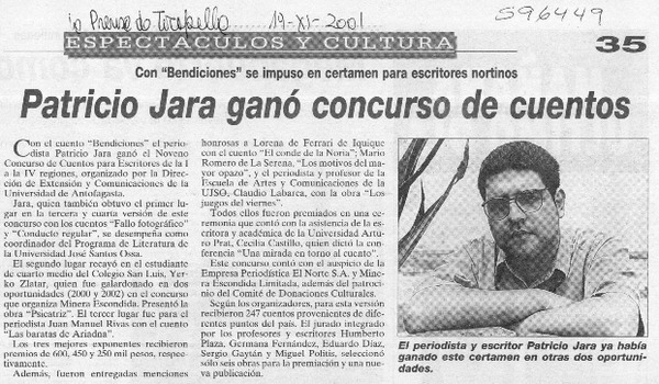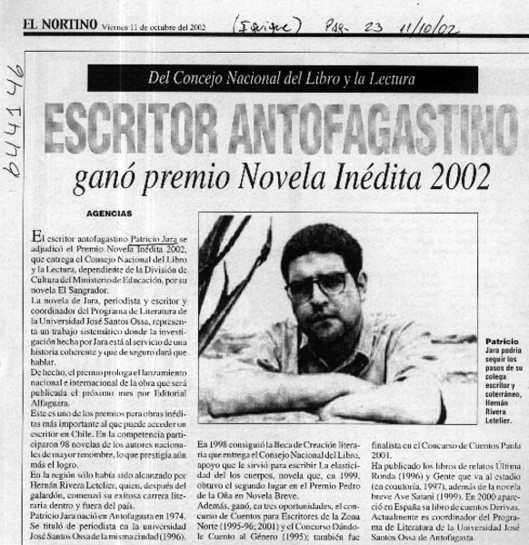 Escritor antofagastino ganó premio Novela Inédita 2002 [artículo]