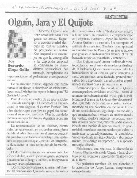 Olgúin, Jara y el Quijote [artículo]Gerardo Claps Gallo.