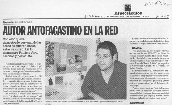 Autor antofagastino en la red [artículo] Jeannette Roca.