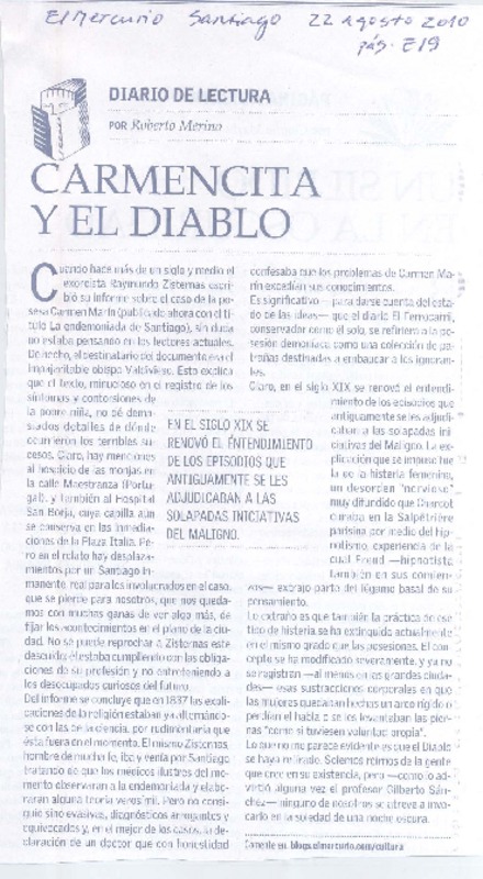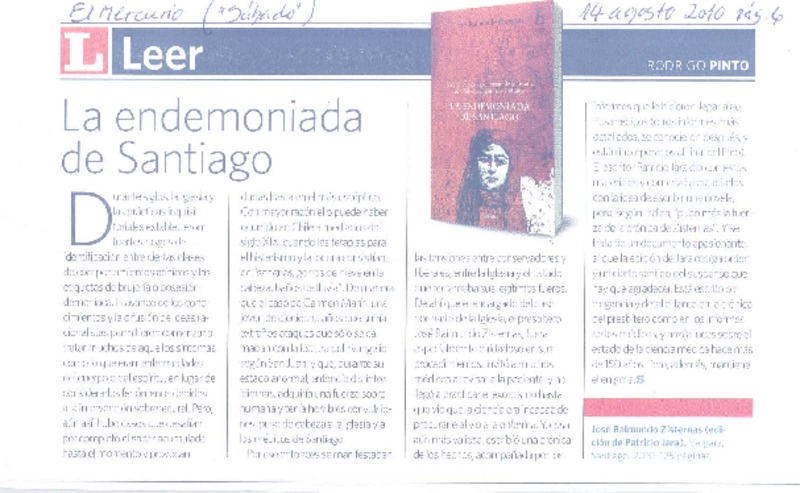 La endemoniada de Santiago [artículo] Rodrigo Pinto.