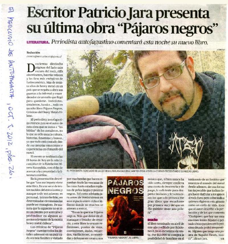 Escritor Patricio Jara presenta su última obra "Pájaros negros". [artículo]
