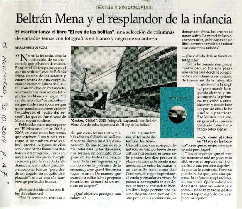 Beltrán Mena y el resplandor de la infancia [artículo] Marilú Ortiz de Rozas