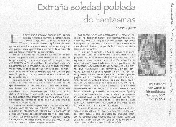 Extraña soledad pobladade fantasmas. [artículo] Milton Aguilar