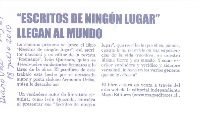 "Escritos de ningún lugar" llegan al mundo [artículo].