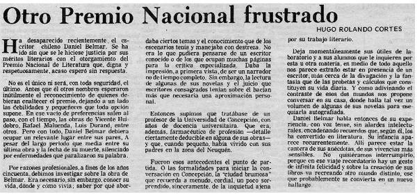 Otro premio nacional frustrado [artículo] Hugo Rolando Cortés.