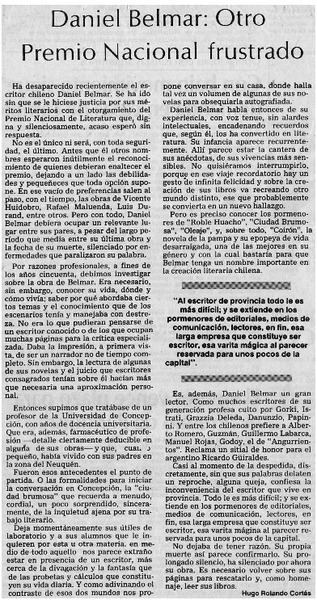 Daniel Belmar, otro Premio Nacional frustrado [artículo] Hugo Rolando Cortés.