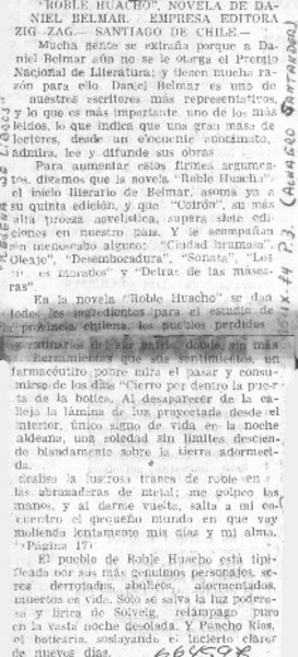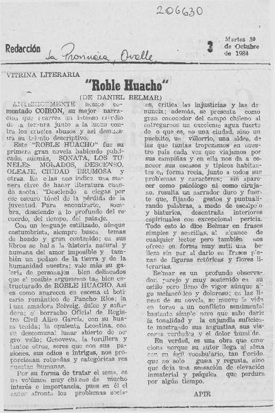 Belmar, Daniel - Autores chilenos - Roble huacho