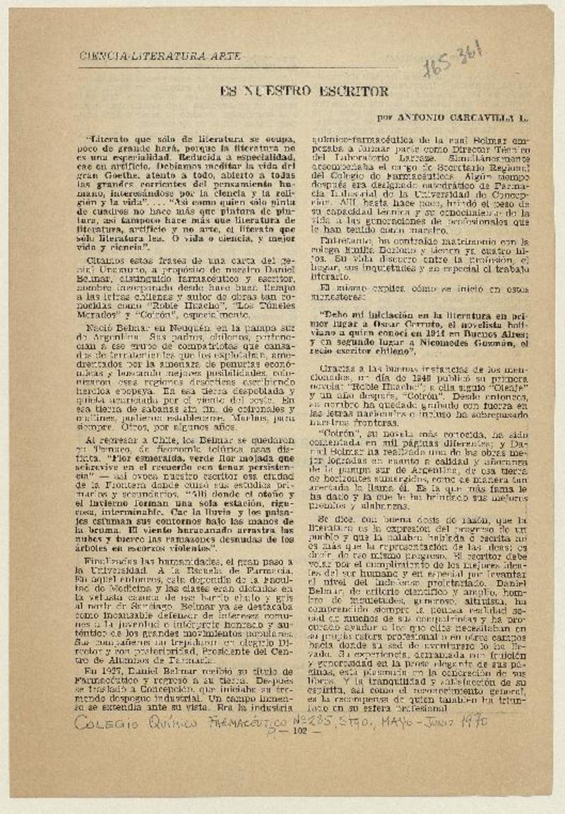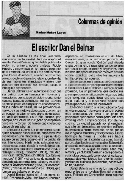 El escritor Daniel Belmar [artículo] Marino Muñoz Lagos.