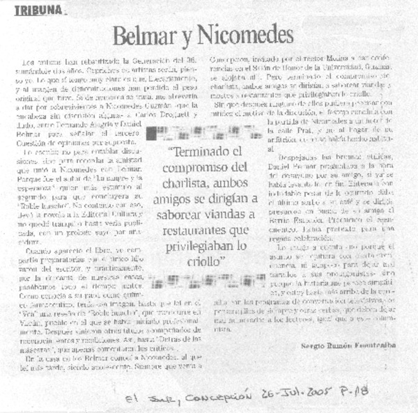 Belmar y Nicomedes. [artículo] Sergio Ramón Fuentealba