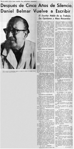 Después de cinco años de silencio, Daniel Belmar vuelve a escribir [entrevista] [artículo] : P. G. de P.