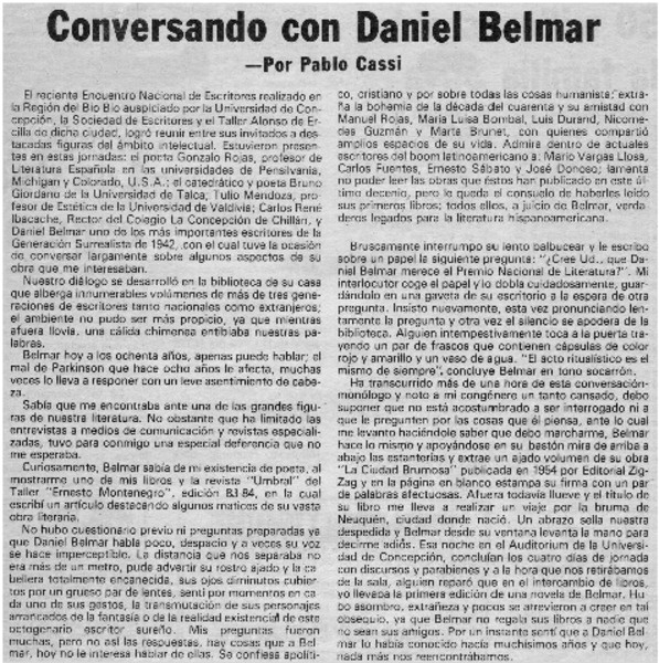 Conversando con Daniel Belmar [artículo] Pablo Cassi.