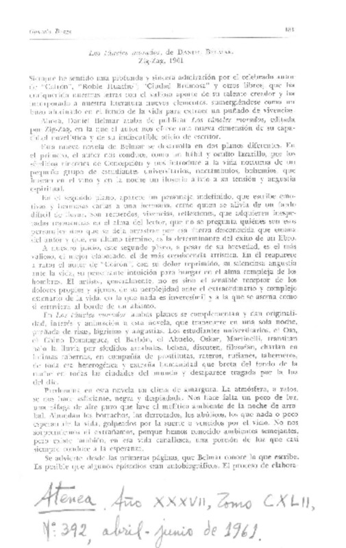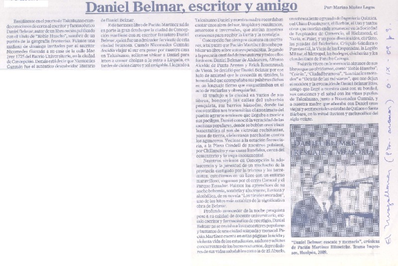 Daniel Belmar, escritor y amigo [artículo] Marino Muñoz Lagos.