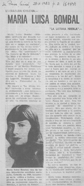 Bombal, María Luisa - Autoras chilenas - Última niebla
