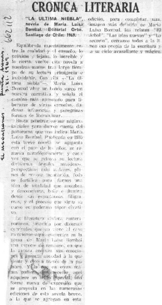 Autoras chilenas - Última niebla - Bombal, María Luisa