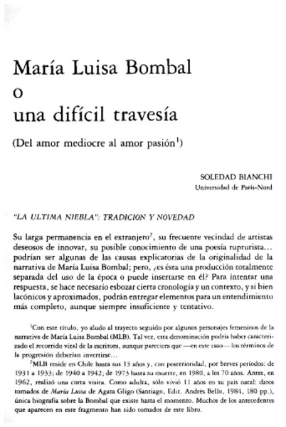 María Luisa Bombal o una difícil travesía [artículo] Soledad Bianchi.
