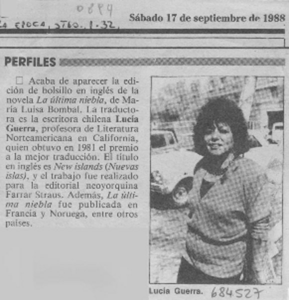 Autores chilenos - Bombal, María Luisa - Guerra Cunningham, Lucía - Última niebla - New Islands