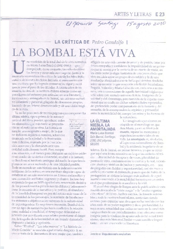 La Bombal está viva [artículo] Pedro Gandolfo.