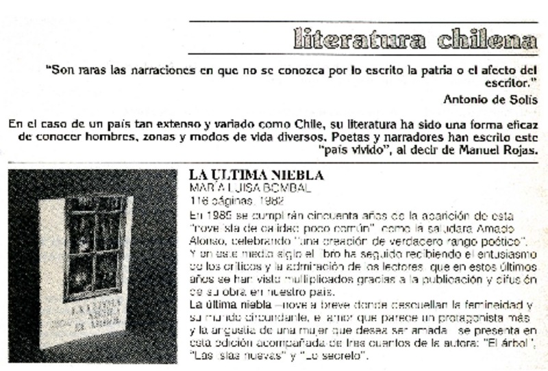 Autores chilenos - Bombal, María Luisa - Última niebla