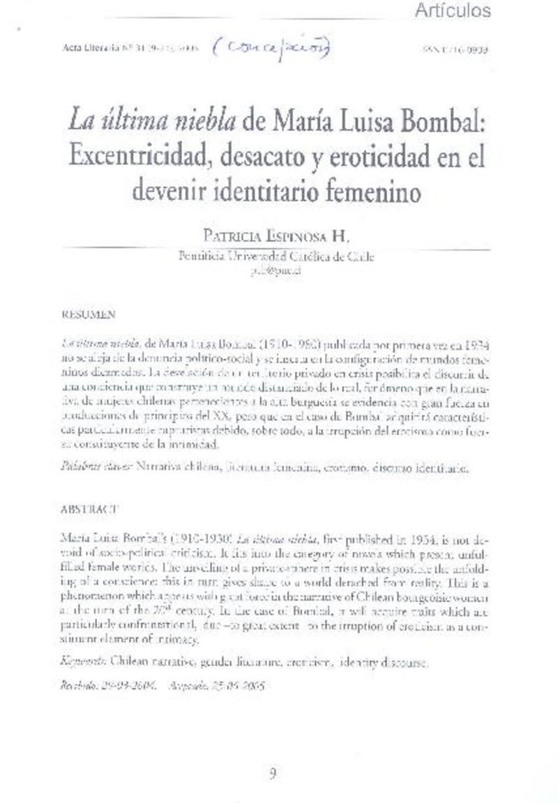 La Última niebla de María Luisa Bombal [artículo] Patricia Espinosa.