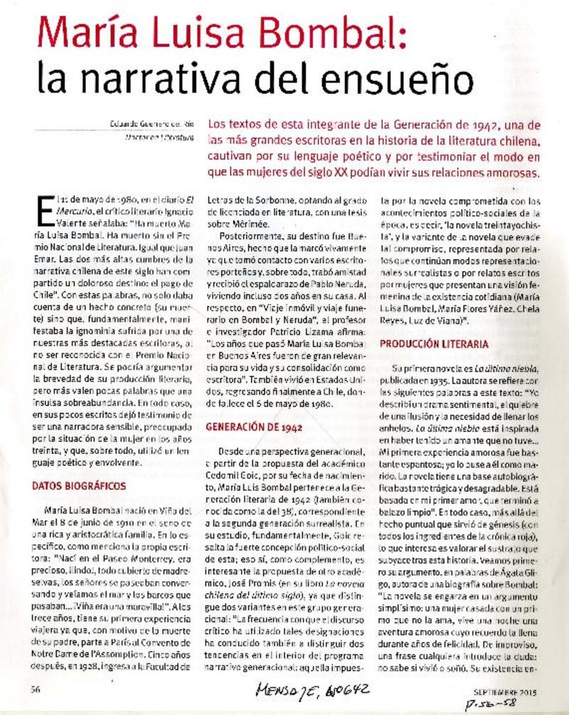 María Luisa Bombal: la narrativa del ensueño [artículo] Eduardo Guerrero del Río.