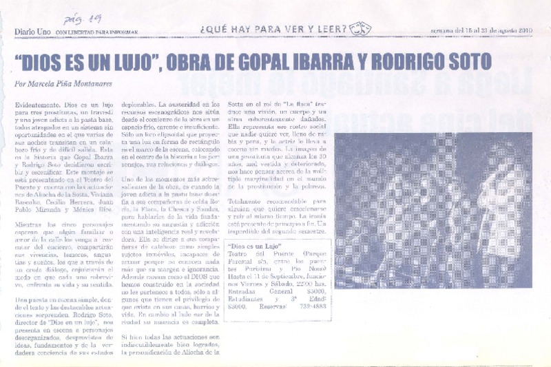 Dios es un lujo [artículo] Marcela Piña Montanares.