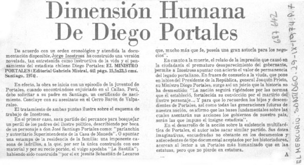 Dimensión humana de Diego Portales. [artículo]