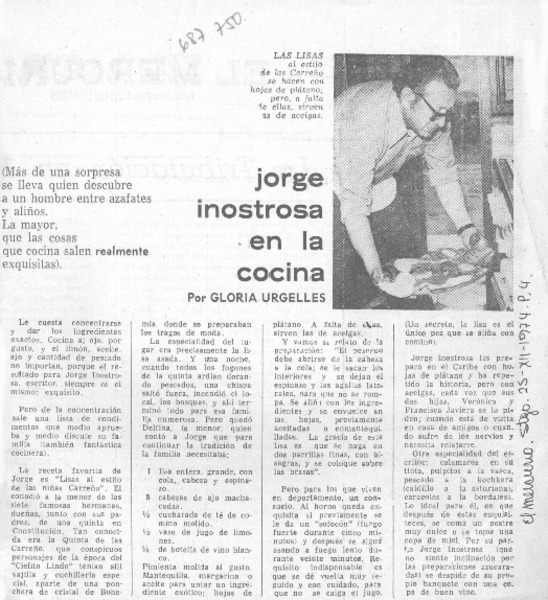 Jorge Inostrosa en la cocina [artículo] Gloria Urgelles.