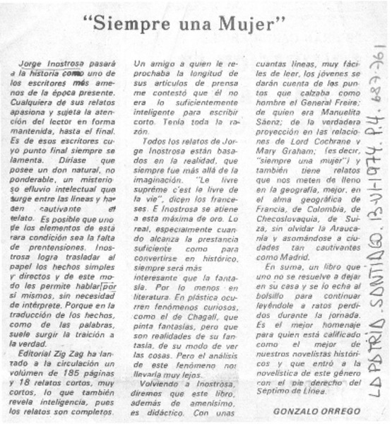 Siempre una mujer [artículo] Gonzalo Orrego.