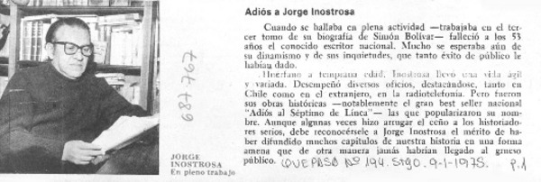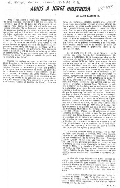 Adiós a Jorge Inostrosa [artículo] Mario Santoro M.