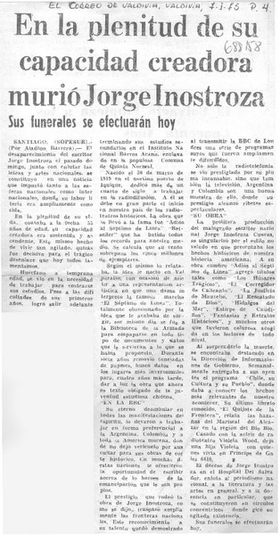 En la plenitud de su capacidad creadora murió Jorge Inostrosa. [artículo]