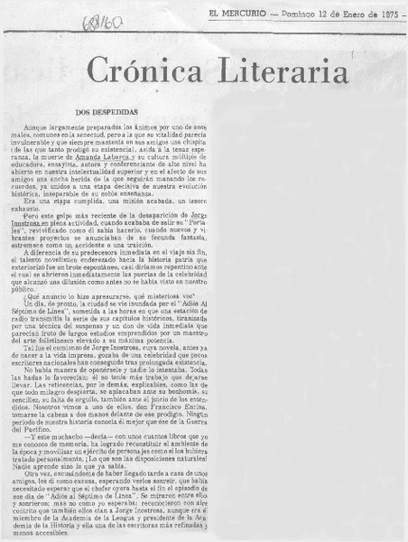 En la muerte de Jorge Inostrosa [artículo] René Sepúlveda.