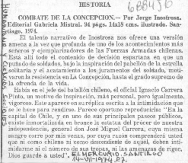 Autores chilenos - Inostrosa, Jorge - Combate de la Concepción