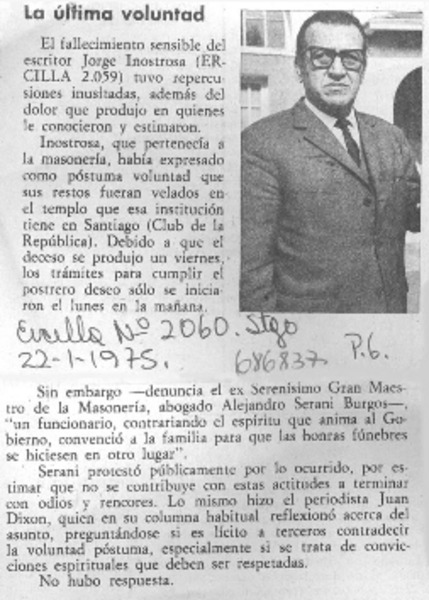 Murió ayer Jorge Inostrosa. [artículo]