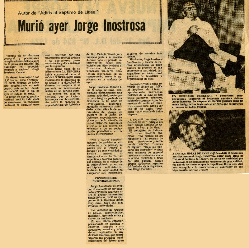 Murió escritor Jorge Inostrosa. [artículo]