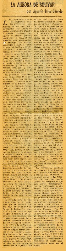 La aurora de Bolívar [artículo] Agustín Billa Garrido.