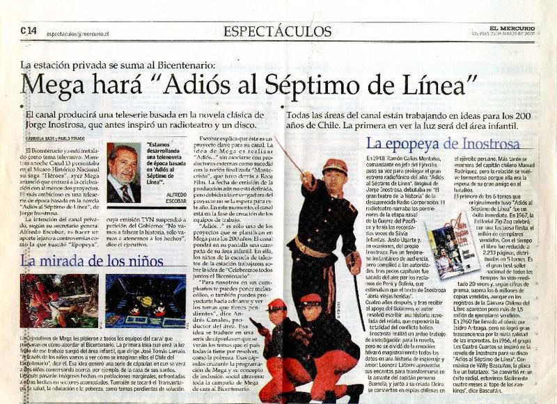 Mega hará "Adiós al Séptimo de Línea" [artículo] Gabriela Bade y ablo Tirado.