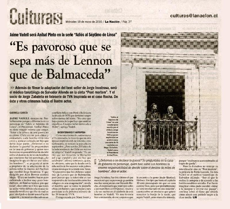 "Es más pavoroso que se sepa más de Lennon que de Balmaceda" [artículo] Gabriela García.