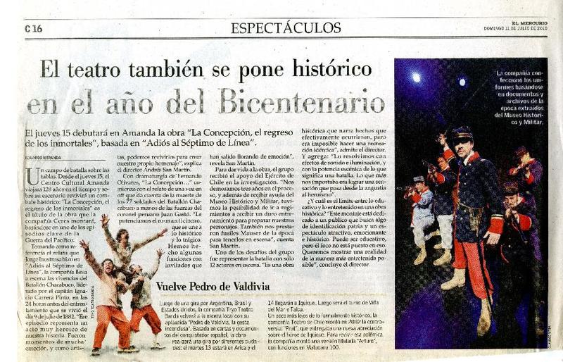 El teatro también se pone histórico en el año del bicentenario [artículo] Eduardo Miranda.