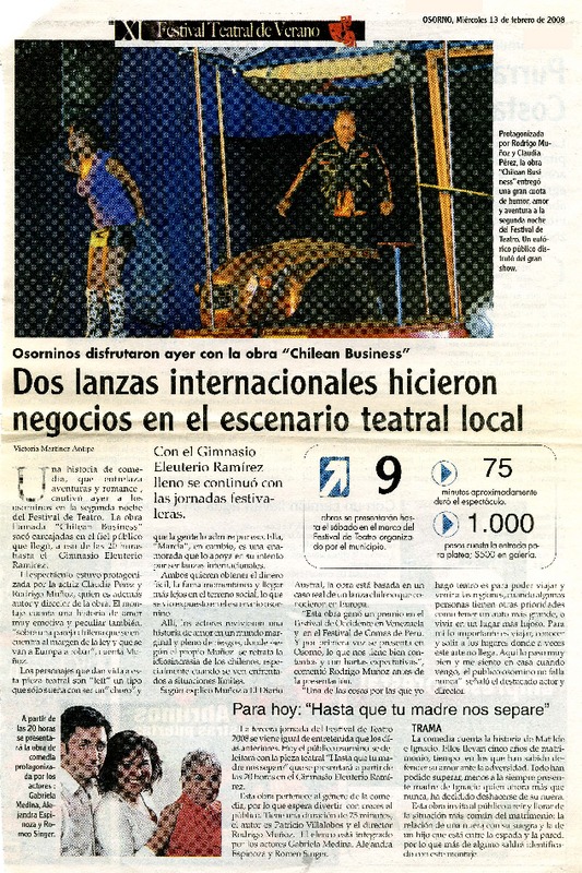 Dos lanzas internacionales hicieron negocios en el escenario teatral local [artículo]Victoria Martínez Antipa.