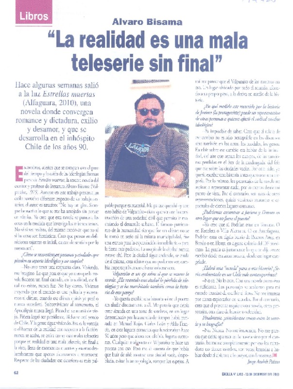 Autores chilenos - Entrevistas - Estrellas muertas - Bisama, Álvaro