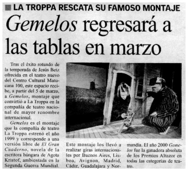 A la venta entradas para "Gemelos" [artículo]