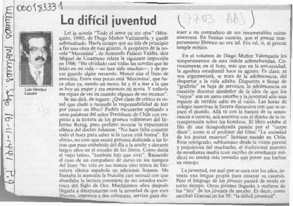 La difícil juventud [artículo] Luis Sánchez Latorre.