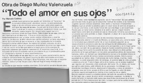 "Todo el amor en sus ojos" [artículo] Marcelo Coddou.