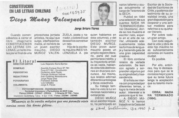 Diego Muñoz Valenzuela [artículo] Jorge Arturo Flores.