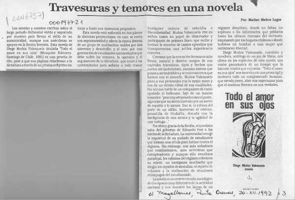 Travesuras y temores en una novela [artículo] Marino Muñoz Lagos.