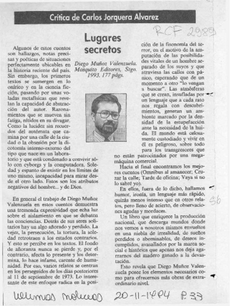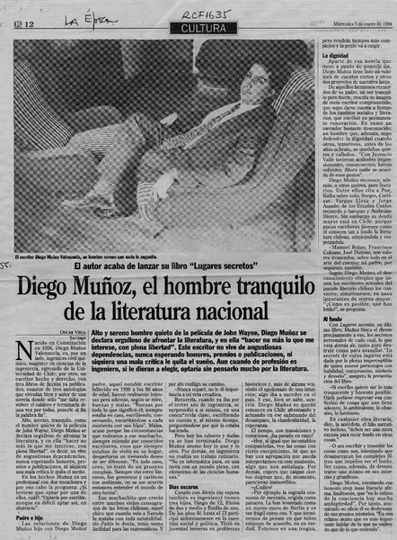 Los secretos de Diego Muñoz [artículo] Ramón Díaz Eterovic.