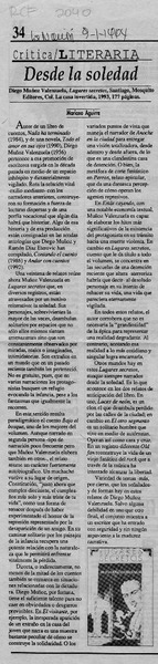 Una novela de Diego Muñoz Valenzuela [artículo] Ramiro Rivas.