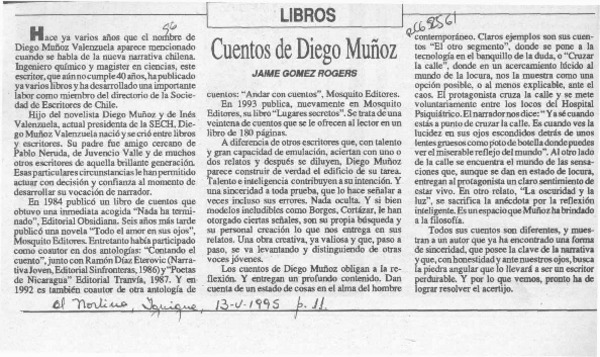 Cuentos de Diego Muñoz [artículo] Jaime Gómez Rogers.