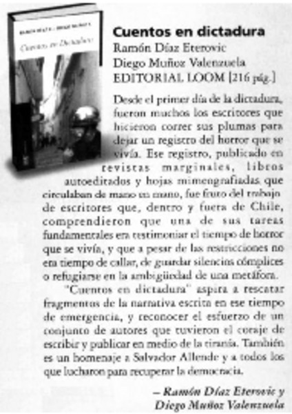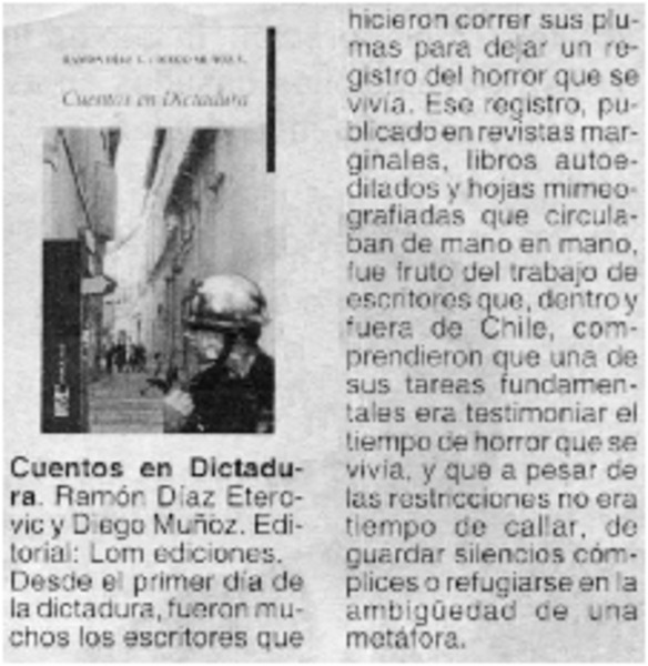 Autores chilenos - Díaz Eterovic, Ramón - Muñoz Valenzuela, Diego - Cuentos en dictadura - "Cuentos en dictadura"