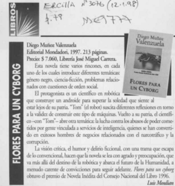 Autores chilenos - Muñoz Valenzuela, Diego - Flores para un Cyborg